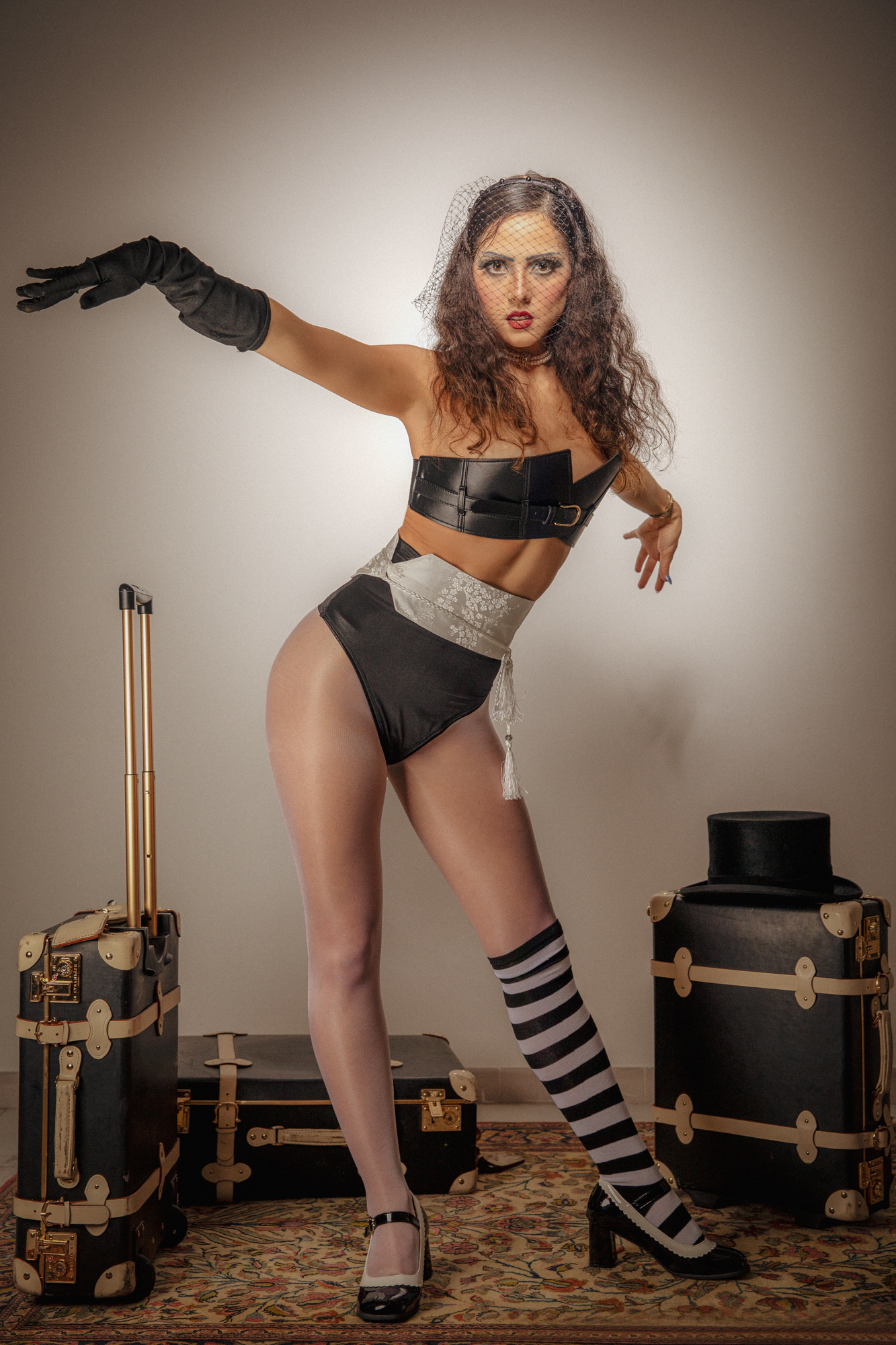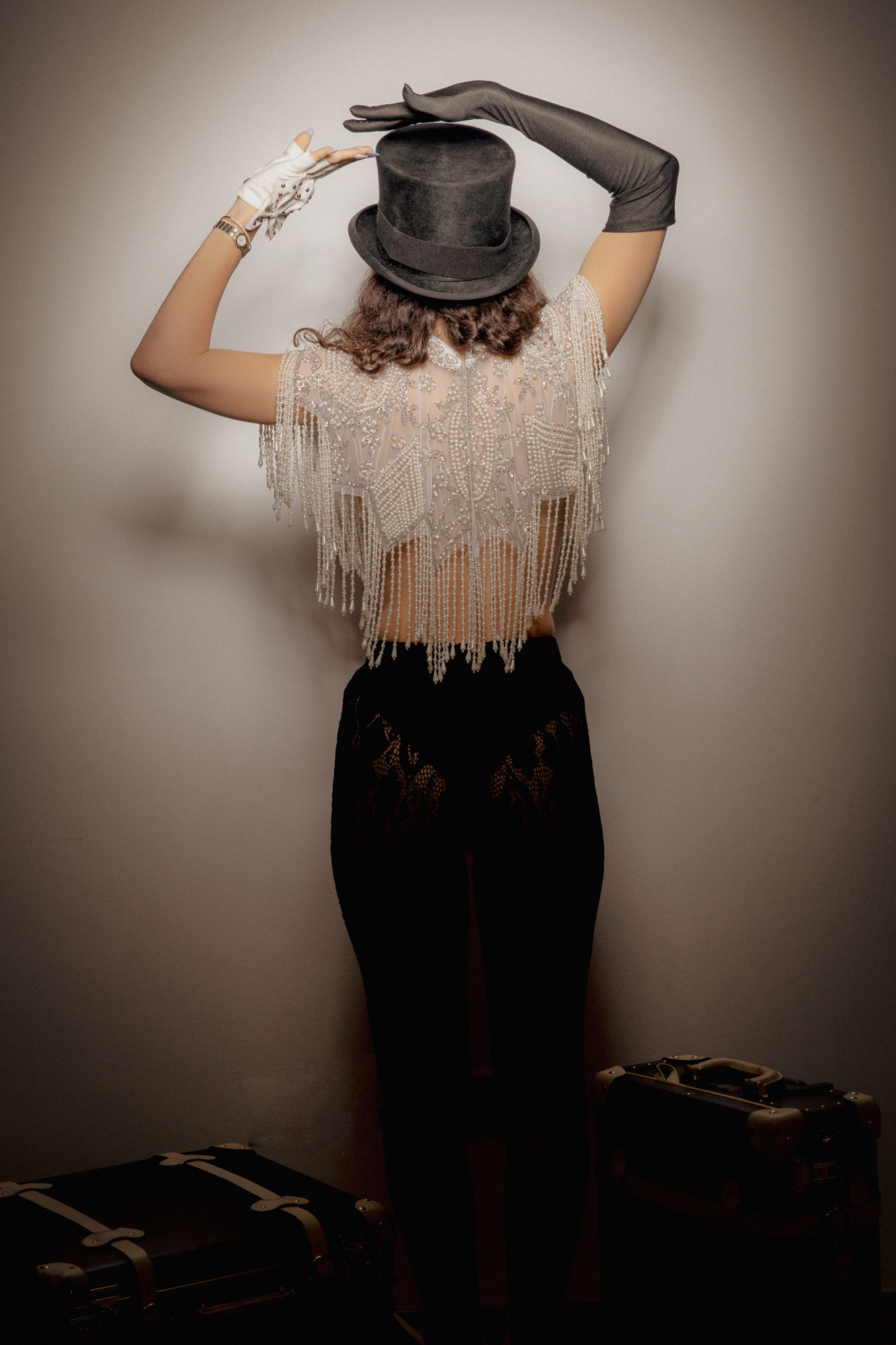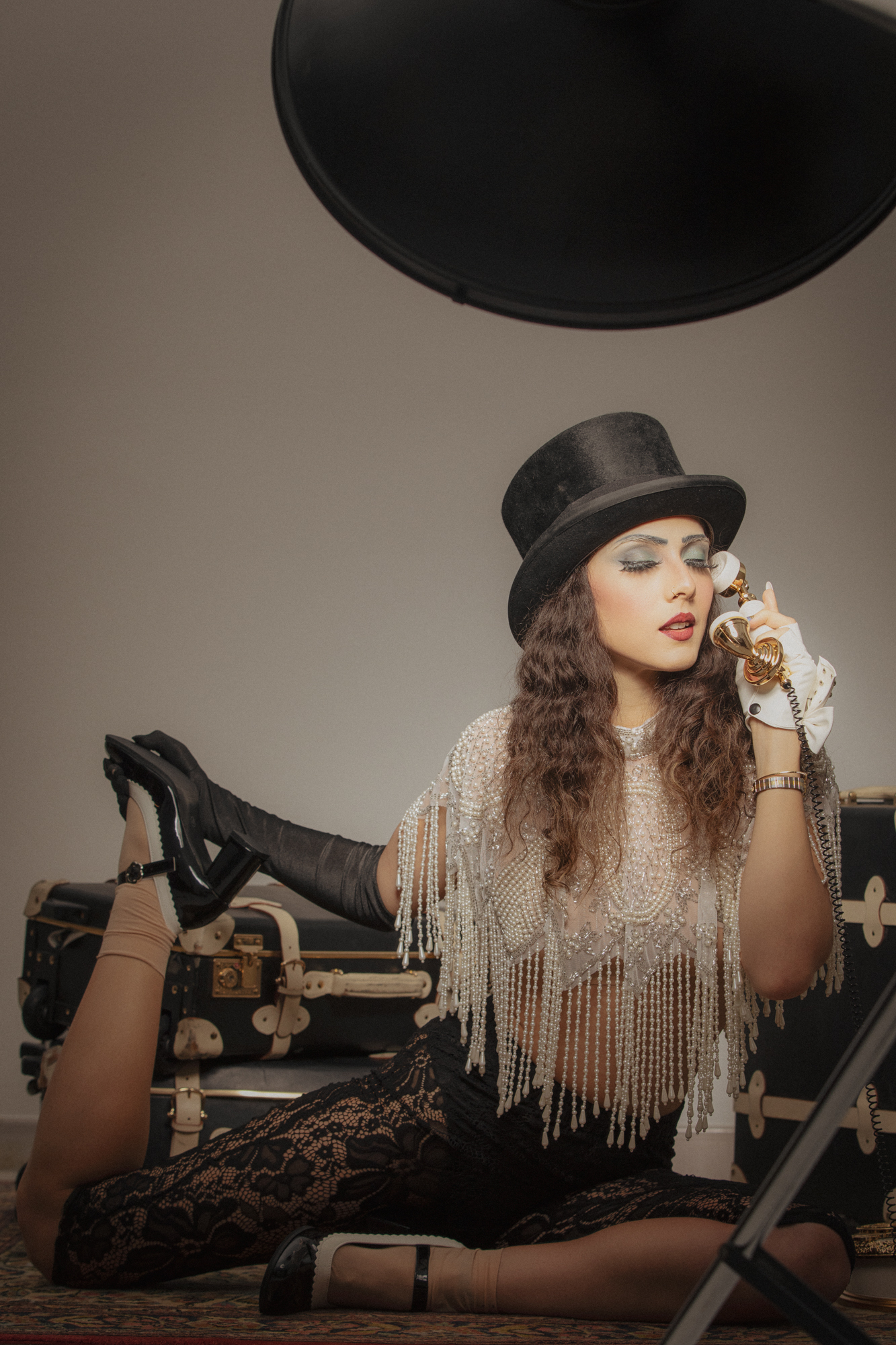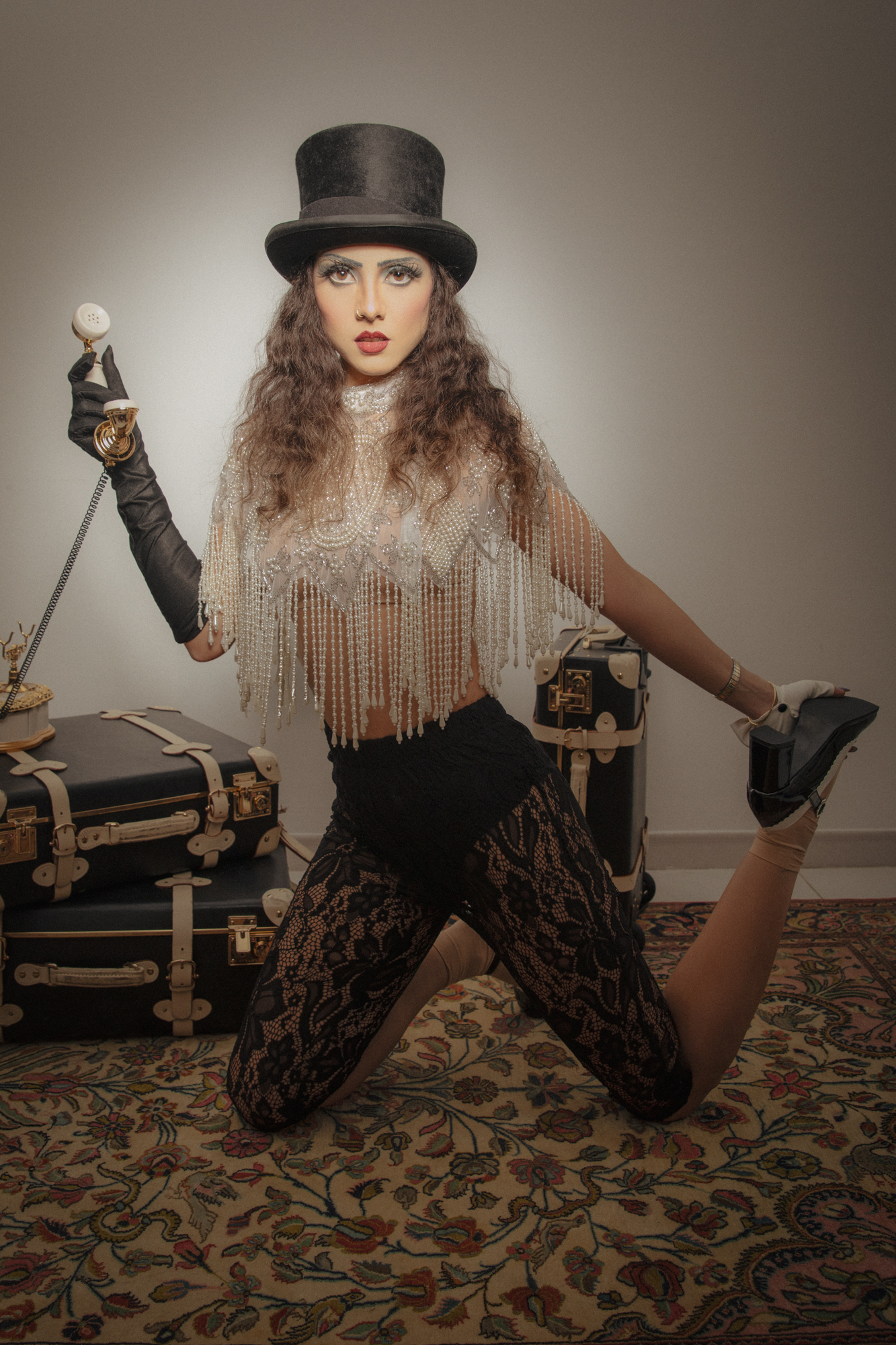 “On a call with her agent, she’s poised and ready to hit the road — blending style, ambition, and the excitement of travel just moments before the performance begins.”